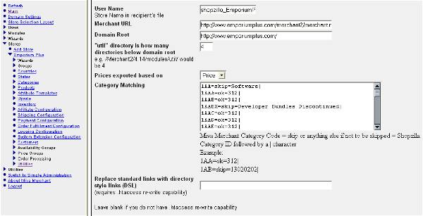 Comments The module will attempt to resolve images for your thumbnails. If you use the full path url for images in your store, it will use them. If you use a virtual path below your mm5/ directory it will add the root directory for graphics that is defined in your admin domain settings. If you preceed the image urls with ../ it will replace the ../ with the domain root you define in the zilladf module's admin. Note: All categories will be skipped until you change the word "skip" to anything else in the module's admin. For each that is changed from "skip", the products in that category will be exported to the flat file. Uncategorized products will not be exported. Shopzilla requires that you use the category IDs from their site to define where your products belong. You'll need to change the text category name to their category ID in the list. When you first install this module it will insert the store's categories into the input on the module's configuration screen. This is a one time import for convenience. If you add new categories to your store and you want the products in those new categories to be included in the datafeed, you will need to add the new categories in the module's configuration screen. Inactive and deleted products will not be exported. Products with zero quantity can be exported. The presumption being that if they are exported they will be searchable in indexes. Once the customer reaches your store, it is up to your policy to decide what to tell them. This way, products will not be missed by search engines just because they are out of stock the day the export is run. Products will be included in the datafeed even if they are in availability groups and are supposed to be restricted viewing. You can prevent this by ensuring they only appear in categories which are skipped or are not in any categories (as above). You may find the affiliate code generation useful, even if the file is not going to an affiliate. By creating a dummy affiliate account, you can track where sales are coming from by checking the affiliate commissions. When you run the report, be sure the file name in the first input is a valid file name (ie letters, numbers, underline and hyphen - no spaces). It is based on the Shopzilla supplied user name that you entered in the zilladf data feed module's admin configuration screen. When you run the export, if you only have one store in your domain and do not expect to add more stores to it, it is recommended that you check the box to suppress the store code. If you do add another store, you can always re-run the export, adding in the Store_Code. Additional fields. Shopzilla has additional optional fields which you may want to include in the export. Those fields are not among the standard fields which are in MIVA Merchant. However, you can use the built in MIVA Merchant Custom Product Fields module to provide the data. You will need to assign the custom field module under the store utilities. Then in each product record you can assign values to those fields. Below is a list of fields which Shopzilla will import. The fields, marked with an asterisk, are the additional fields which you can include data if you have assigned values in the product records for those custom fields. Category *Mfr Title Description LINK Image SKU Stock *Condition Ship Weight *Ship Cost *Bid *Promo Des. *Other Price Fortunately, you do not need to call your custom fields the same names as Shopzilla uses. You may have other exports which would name them slightly different. So in the Shopzilla data feed module you can map your custom fields to match the six optional fields that Shopzilla can use. You will need to put them in the same order in the special input provided in the admin screen for this purpose. Separate each field with the | character. If you do not have one or more of the custom fields, you will leave the field name blank but still use the | character to mark the location. You must have all six slots to use this feature. As example, manuf|cond||bid|promo|other would map the fields manuf, cond, bid, promo, and other in your Merchant custom fields to Shopzilla's mfr, condition, ship cost, bid, promo, other. This example would skip ship cost since you did not list one in the custom fields list and left that spot blank. After running the export, the link will appear in the admin window. That link uses another window to display your text file results. When you go to that other window, be sure you refresh/reload the screen as the previous export may still be in the cache. Save that file to your PC and then upload per Shopzilla's instructions. |